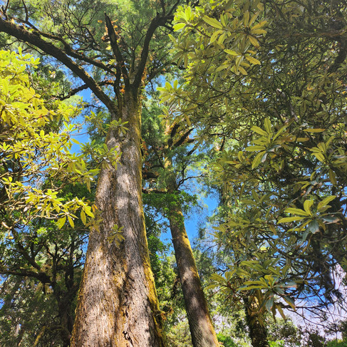 Et sans transition aucune, la jungle laisse la place à une forêt plus aérée, formée d’immenses arbres aux troncs rouges tortueux et au feuillage luisant. Renseignements pris, il s’agit d’une des nombreuses espèces de rhododendrons, que nous n’avions pas reconnus tellement ils sont immenses.